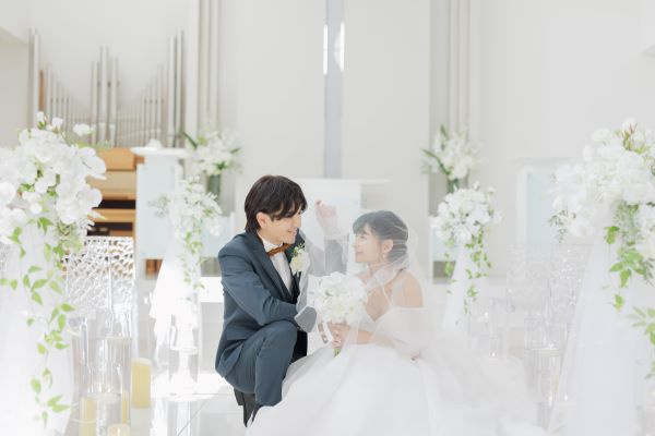挙式費用・新郎新婦様の衣裳などすべてがセットになったプラン。 さらに写真1ポーズも付いてくるので当日のお写真もばっちり残せます! 衣裳はベルクラシックグループ限定衣裳など数多く取り揃えている中から お好きな衣裳をお選び頂けます♩