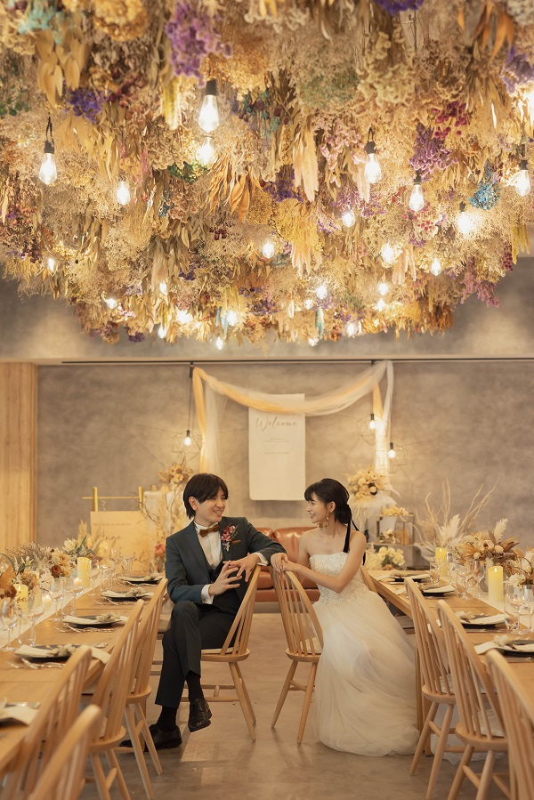 パーティスタイルのカジュアルウェディング 1.5次会と同様ご友人や親しい仲間が集まってお披露目会! 形式ばったカタチではなくカジュアルに結婚式を行いたいお2人にオススメ!